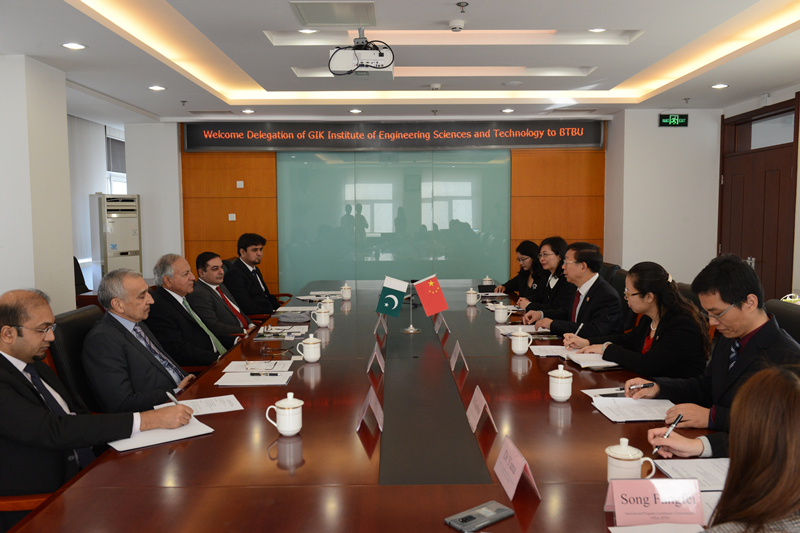 11月10日,巴基斯坦工程科技促會(huì)執(zhí)行主席、GIK工程科技學(xué)院董事沙基·杜拉尼先生、GIK工程科技學(xué)院校長賈吉汗·巴沙爾先生、大使館教育官員穆罕默德·蘇萊曼先生等一行五人訪問我校。孫寶國校長在阜成路校區(qū)會(huì)見了代表團(tuán)一行,會(huì)談?dòng)蓢H交流與合作處處長劉影主持。