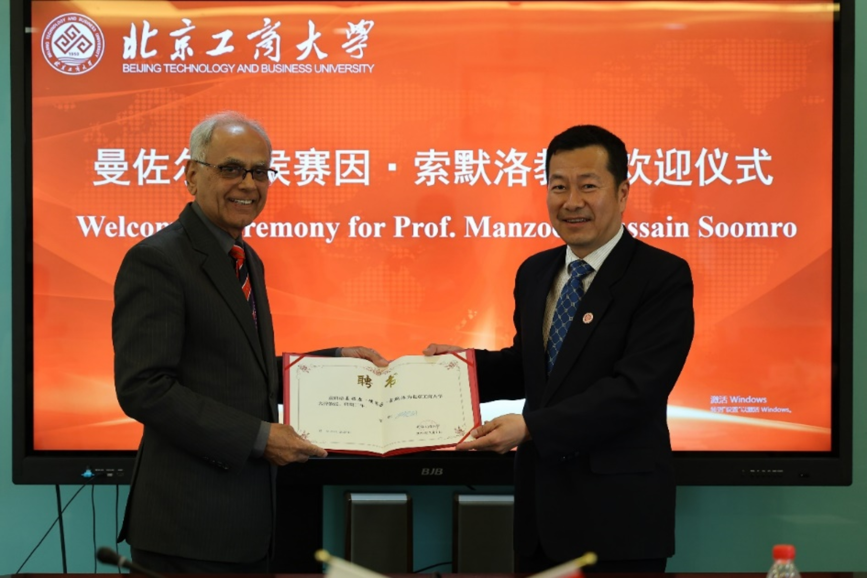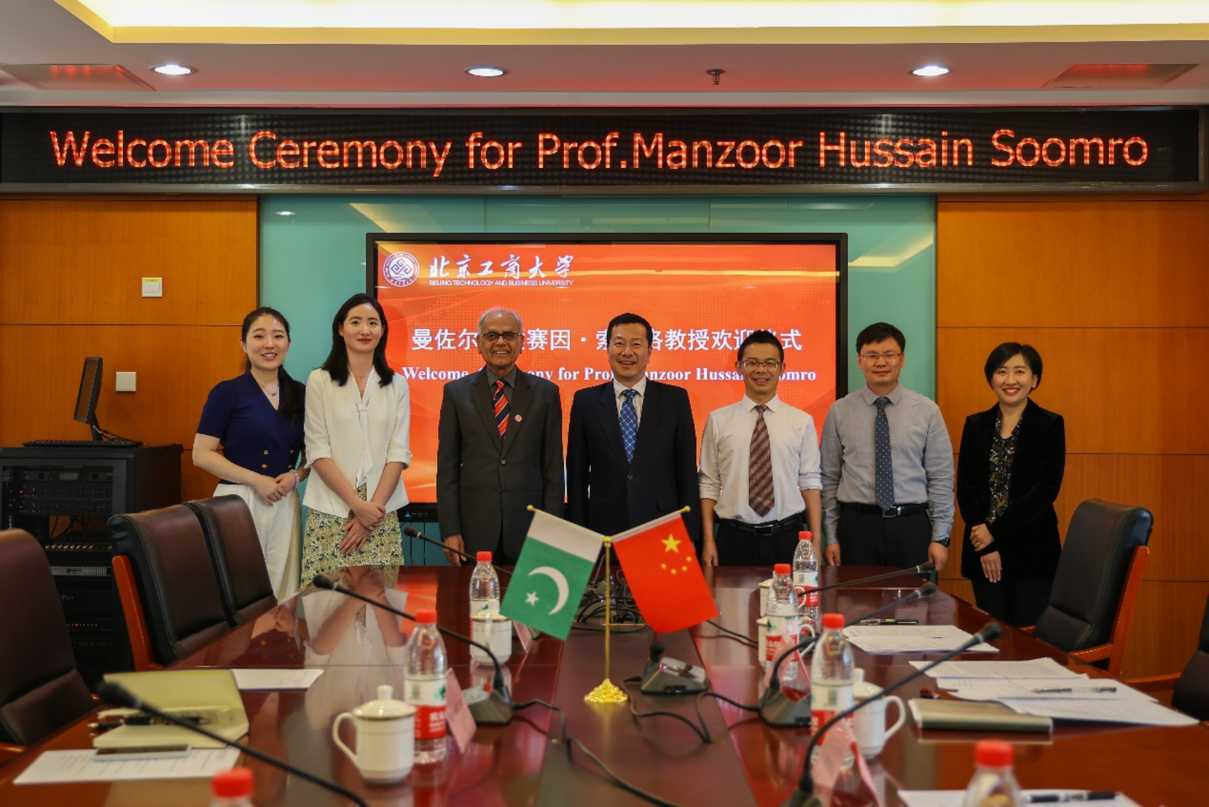 5月10日,學校名譽教授曼佐爾·侯賽因·索默洛教授(Manzoor Hussain Soomro)歡迎儀式在阜成路校區(qū)舉行。黨委常委、副校長劉敏華出席會議。國際經(jīng)管學院院長詹新宇,人事處副處長錄馳沖,國際交流與合作處副處長馬雪嬌,“一帶一路”聯(lián)合培訓中心主任邸玉娜,國際經(jīng)管學院數(shù)字經(jīng)濟系副主任韓璐參加座談會。會議由馬雪嬌主持。