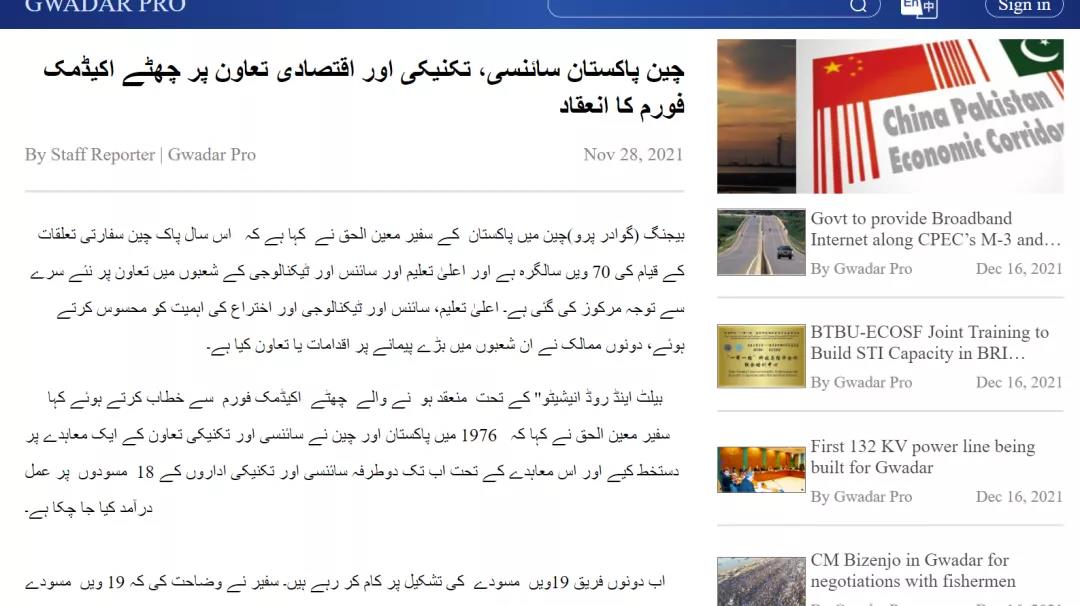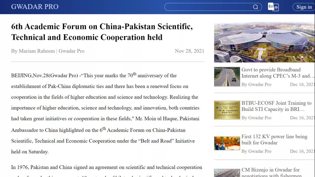網址:https://www.app.com.pk/global/6th-academic-forum-on-china-pak-scitech-and-economic-cooperation-held/