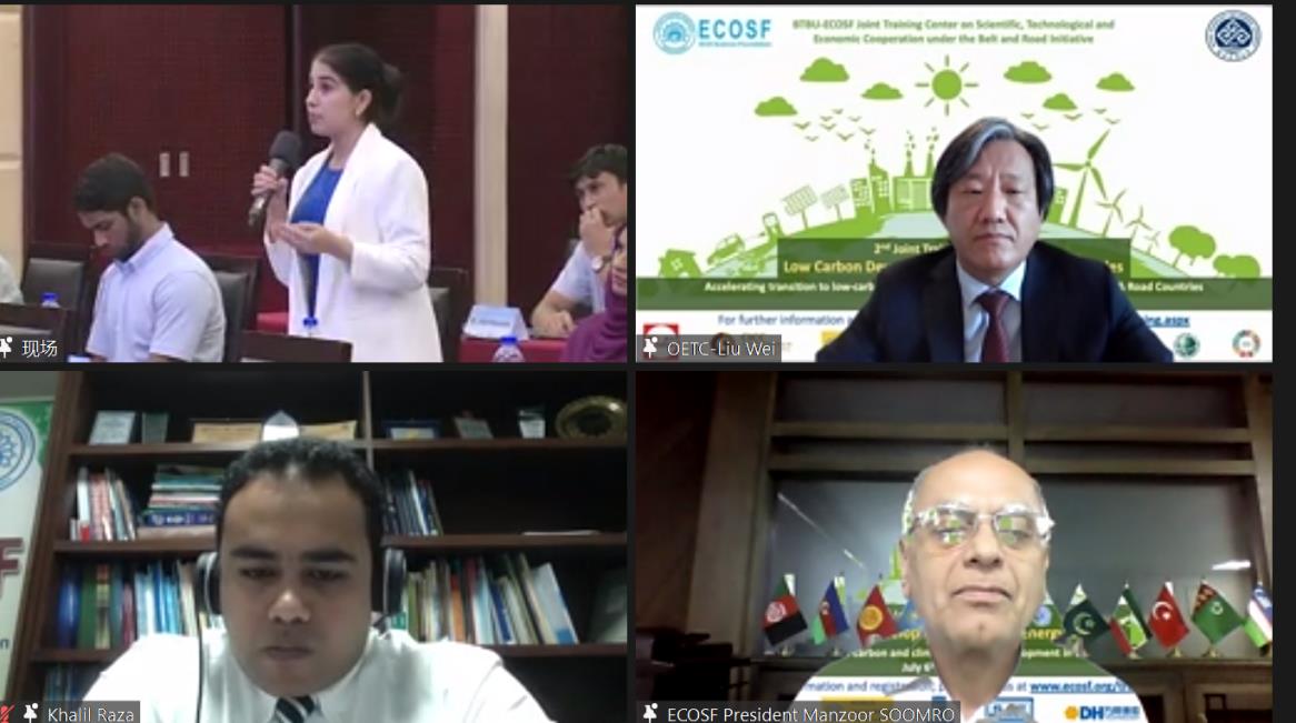經濟合作組織科學基金會主席曼佐爾·侯賽因·索洛教授進行總結講話。他對中國科協對聯合培訓中心的大力支持、各位合作單位的通力合作、學校的精心籌備、各位專家的精彩授課表示誠摯的感謝。在此次培訓中,來自中國企業和機構的知名專家就“一帶一路”國家關注的低碳發展問題進行了精彩的授課,具有重要啟發意義,相信各位參會學員都收獲頗豐。此次培訓進一步增強了“一帶一路”國家之間低碳發展的溝通了解,將有力于推動進一步的合作對接。未來將繼續組織更多更好的培訓,促進各國交流合作,持續推動“一帶一路”高質量發展。