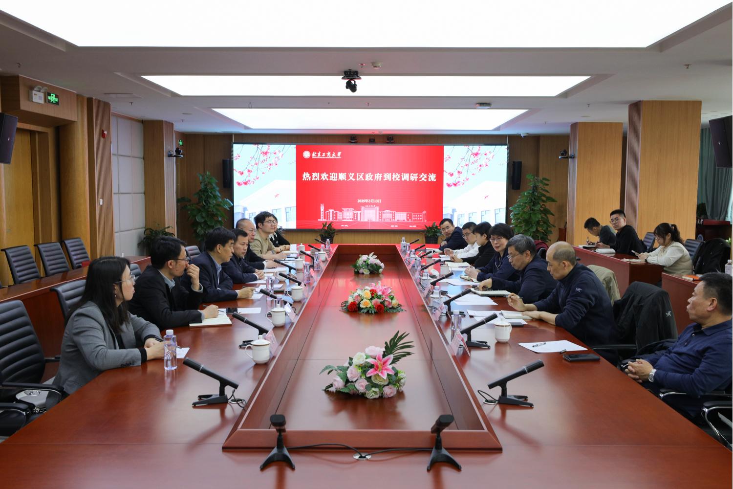 3月13日,北京市順義區副區長侯穎,區政協副主席、區科委主任楊鳳輝等一行到我校阜成路校區調研交流。會議由黨委常委、副校長寇紅江主持。