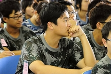 一米八四的個子,臉上帶著微笑,一身漂亮的迷彩軍裝讓李岸顯得精神奕奕、干勁十足。在軍訓(xùn)的前幾天就患上了急性腸炎,本來可以免訓(xùn)或者緩訓(xùn)的他,卻在休息幾天之后帶著藥來到了訓(xùn)練場。