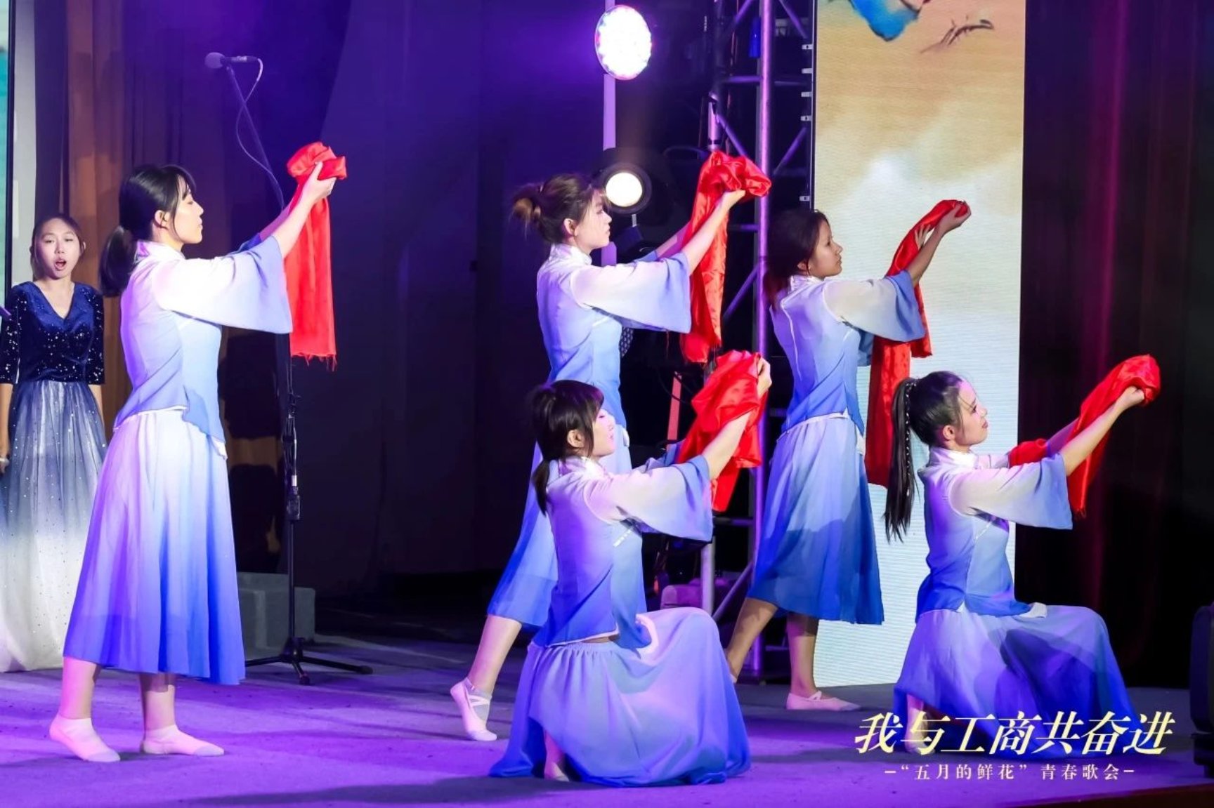 校舞蹈團(tuán)活力四射的《奔跑的青春》旋律,拉開(kāi)了青春歌會(huì)的序幕。