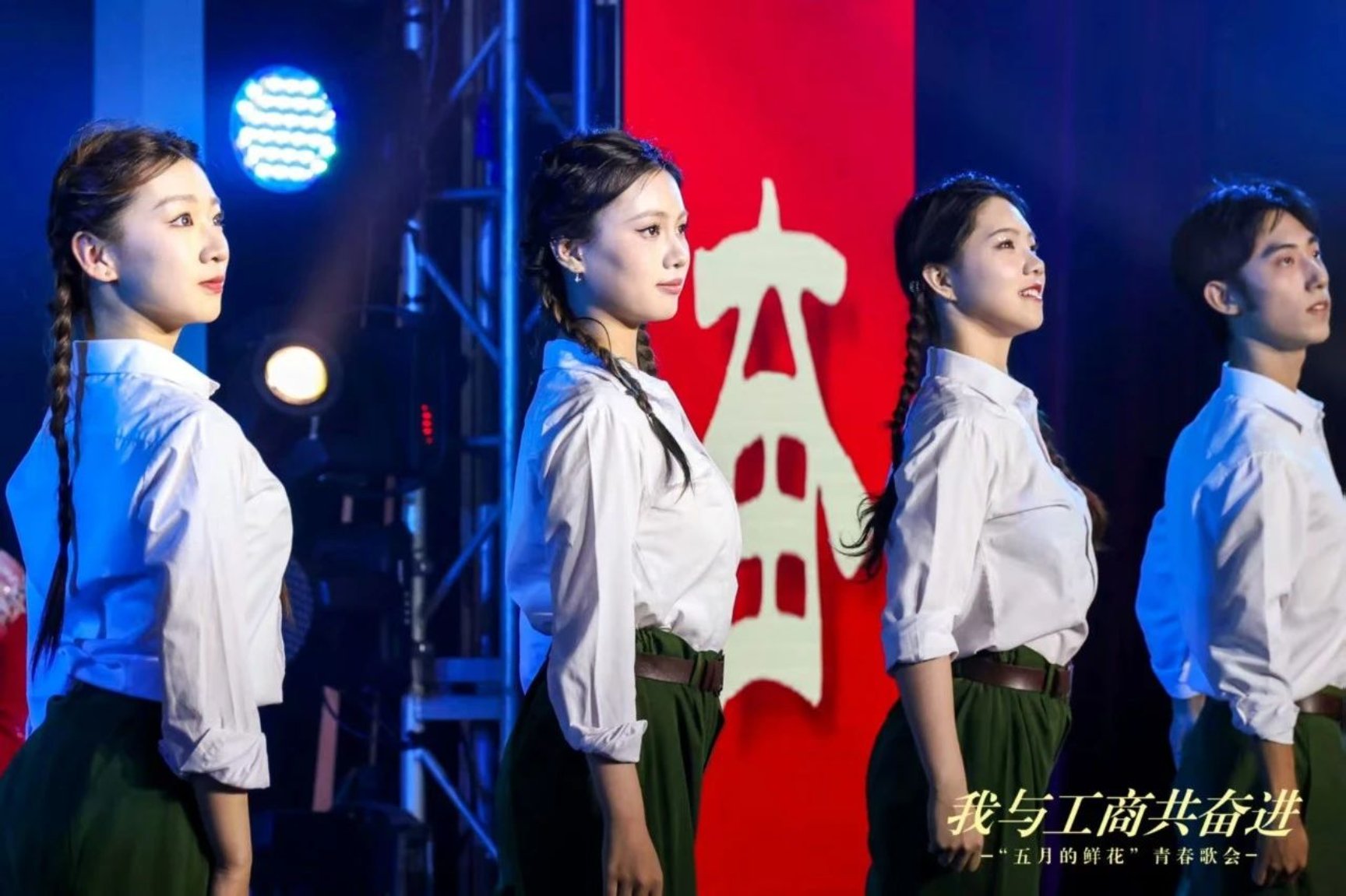 商學(xué)院昂揚(yáng)勵(lì)志《在燦爛陽(yáng)光下》《一路生花》,譜寫出在黨的光輝照耀下,奮斗者們堅(jiān)持不懈、逐夢(mèng)前行,終獲繁花簇?fù)恚ビ舴曳嫉拿篮卯嬀怼?0年代、80年代、90年代、00年代四屆校友用飽含深情的誦讀,表達(dá)了對(duì)母校的感恩和衷心祝愿,更表達(dá)出對(duì)學(xué)弟學(xué)妹們勇敢追夢(mèng)、綻放青春的美好祝福。演出傳遞出薪火相傳的奮進(jìn)力量,描繪了北工商學(xué)子與母校共奮進(jìn)、與祖國(guó)共成長(zhǎng)的動(dòng)人場(chǎng)景。