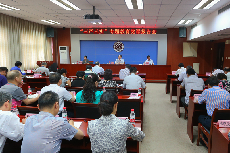 5月29日下午,學校黨委書記譚向勇在阜成路校區為處級以上領導干部講黨課。全體校領導和全體中層干部參加報告會。會議由校長孫寶國主持。