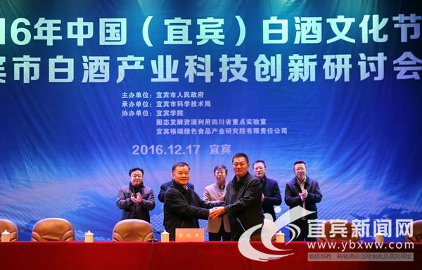 北京工商大學校長、博士生導師、中國工程院院士孫寶國,北京工商大學黨委常委、副校長、教授博士李朝鮮,北京工商大學黨委常委、校辦主任、教授博士王小藝,市委常委、組織部部長蔣剛,市政府黨組成員張平出席簽約儀。李朝鮮、張平分別代表雙方簽約。簽約儀式上,宜賓學院還與四川省瑞測檢驗檢測有限公司就建立四川宜賓格瑞綠色食品產業技術研究院進行了簽約。