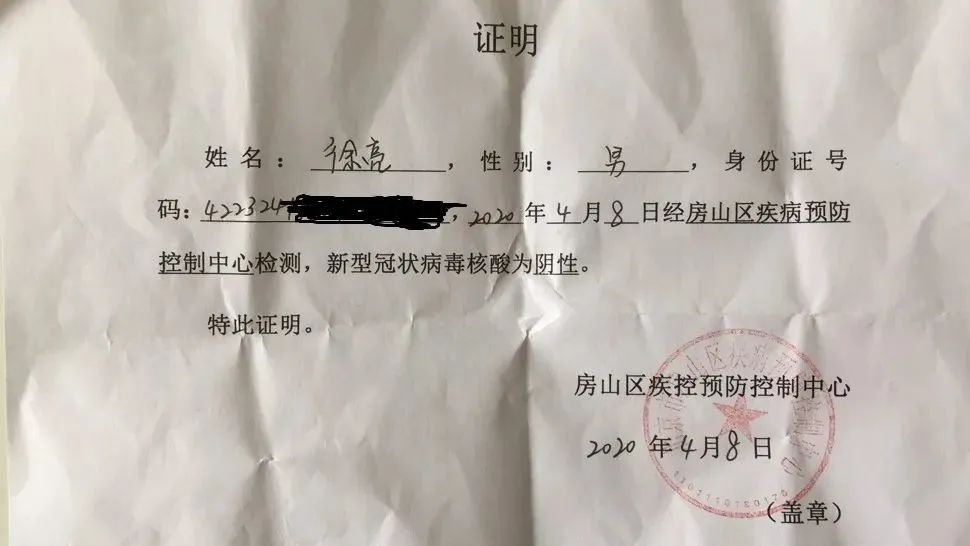 “歡迎回家”,多么熟悉的味道,工作人員早早在站臺等候,我們聽從指揮安排,由專人引導離漢返京旅客經(jīng)由專用通道和出站口有序出站,來到房山區(qū)接站指定區(qū)域,隨后乘坐大巴經(jīng)歷1個多小時來到房山區(qū)的一個酒店入住等待核酸檢測,工作人員加班加點檢測,11:30左右檢測結果出來為陰性,隨后拱辰街道工作人員不辭辛苦安排專車接我回到所住小區(qū)。經(jīng)過體溫檢測、實名驗證和登記后,凌晨12:30終于回到了期盼已久的家。