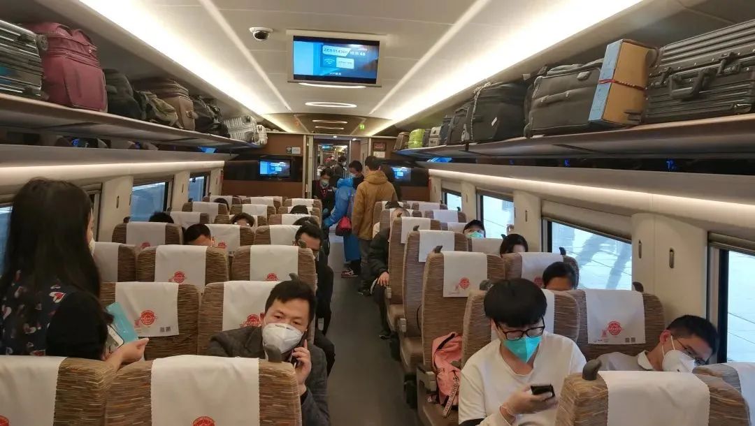 測量體溫,出示健康碼,核驗名單……經(jīng)過一系列程序后,我們登上了回京的火車。與以往“春運”返程相比,專列乘客以中青年為主,車廂內(nèi)的人員密度也低了一些,乘務員會分時段給乘客測量體溫。本著對自己和國家負責的態(tài)度,我一路上沒摘過口罩,沒有吃飯和喝水。