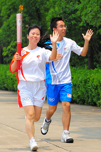 北京奧運官網5月24日訊 5月24日早,北京奧運圣火開始了在上海的第二天傳遞,搜狐聯席總裁兼首席營銷官王昕作為第164棒參與了今日的圣火傳遞。