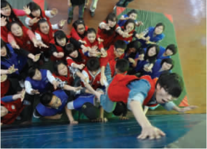 多名學(xué)生先后參加心理體驗。圖為學(xué)生正在上心理素質(zhì)拓展體驗課。