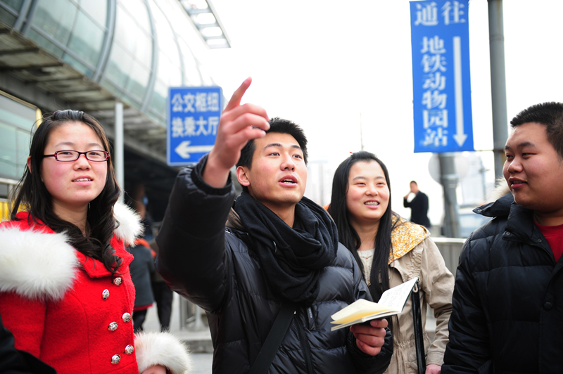 一到周末,只要不趕上期末考試,這位就讀于北京工商大學(xué)的大男孩就會出現(xiàn)在動物園交通樞紐處,為異鄉(xiāng)人指點(diǎn)迷津。在韓昱琦看來,北京這些年的發(fā)展實(shí)在太快,新增的公交線路如爬山虎一樣將城市編織得密不透風(fēng),這些密如蛛網(wǎng)的公交線路,數(shù)以百計(jì)的沿線站名、換乘站點(diǎn)對于老北京人來說看著都頭疼……