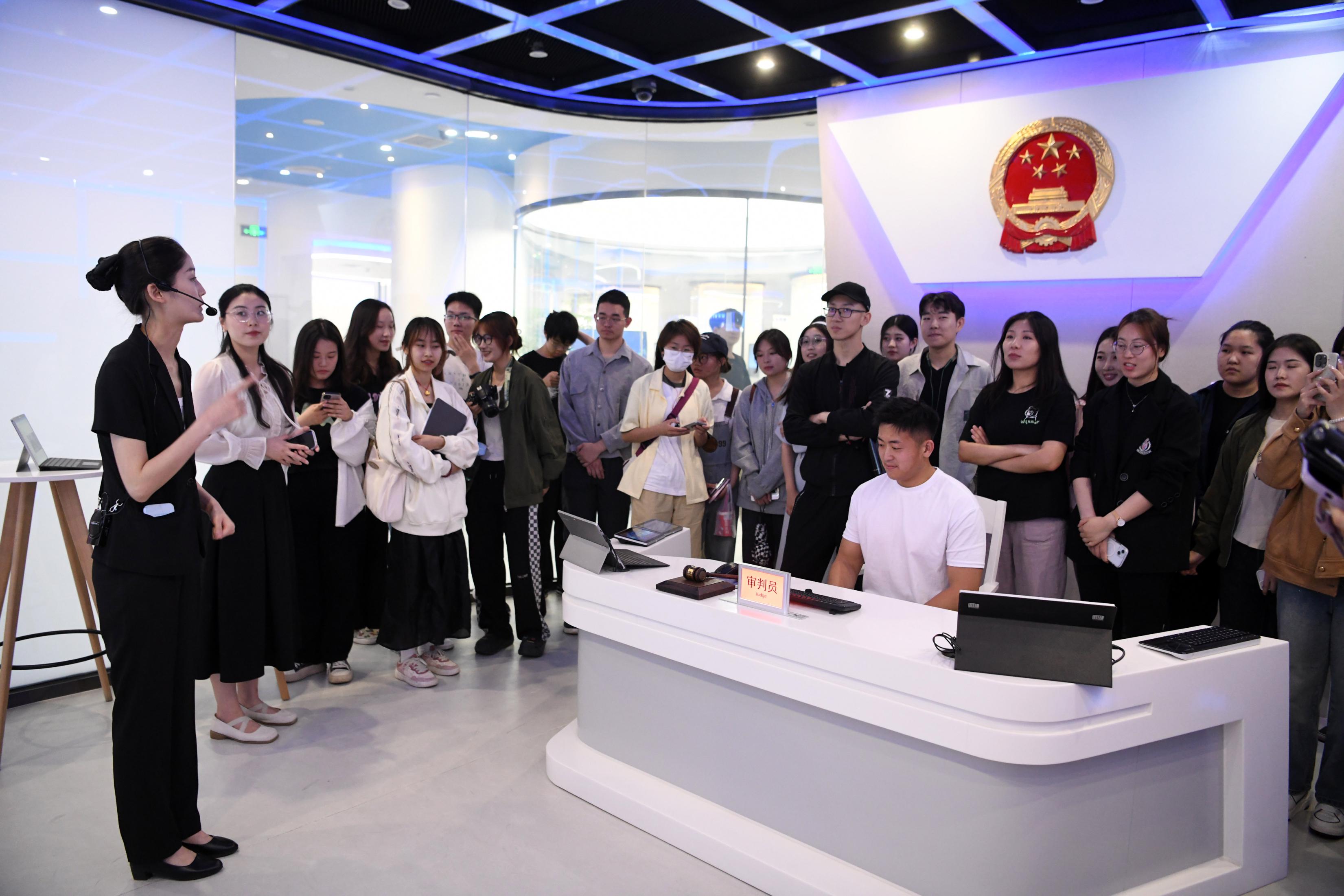 學生還參觀了在線訴訟體驗區,了解第一代網絡法庭、人工智能法官等在線訴訟的新技術、新方法。他們還在新型法官辦公區,體驗虛擬法庭艙。“現在,原告、被告和法官不用見面,就能完成一場庭審。”中央民大法學院大一學生金涵鈺說,科技為司法工作創造了便捷和高效的條件。