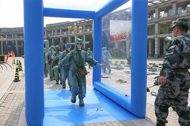 承擔此次組訓任務的某裝備公司負責人談到,把有意義的訓練內容變得有意思,讓大學生能夠愿意主動參與、開心學習是開展高校核生化防護訓練科目設計的初衷。此次訓練通過設定核泄露事故、化工廠爆炸事故、生物防疫三種真實發生在我們身邊的情境假設,可以讓學生身臨其境學習核生化防護知識,增強國防觀念和國家安全意識。