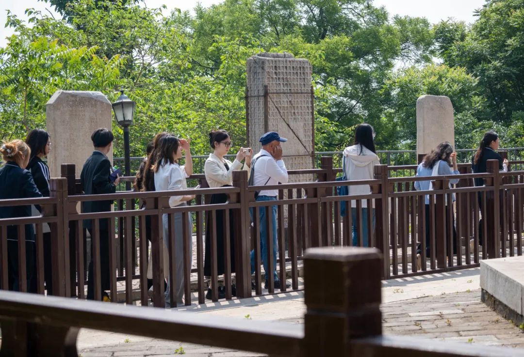 備賽期間,北京工商大學(xué)40余名師生走進(jìn)云居寺,由講解員帶領(lǐng)學(xué)生全程游覽,漫步于五大院落之間,近距離感受古寺的宏偉布局和千年歷史底蘊(yùn)。講解員詳細(xì)介紹每一處古跡背后的故事,學(xué)生們駐足凝望古塔,仔細(xì)研習(xí)古建規(guī)制,認(rèn)真解碼古塔、云紋、斗拱飛檐等視覺(jué)符號(hào)的文化內(nèi)涵,挖掘其中的創(chuàng)意亮點(diǎn),精準(zhǔn)提煉出能夠展現(xiàn)云居寺特色的文化元素,為文創(chuàng)產(chǎn)品設(shè)計(jì)奠定基礎(chǔ)。