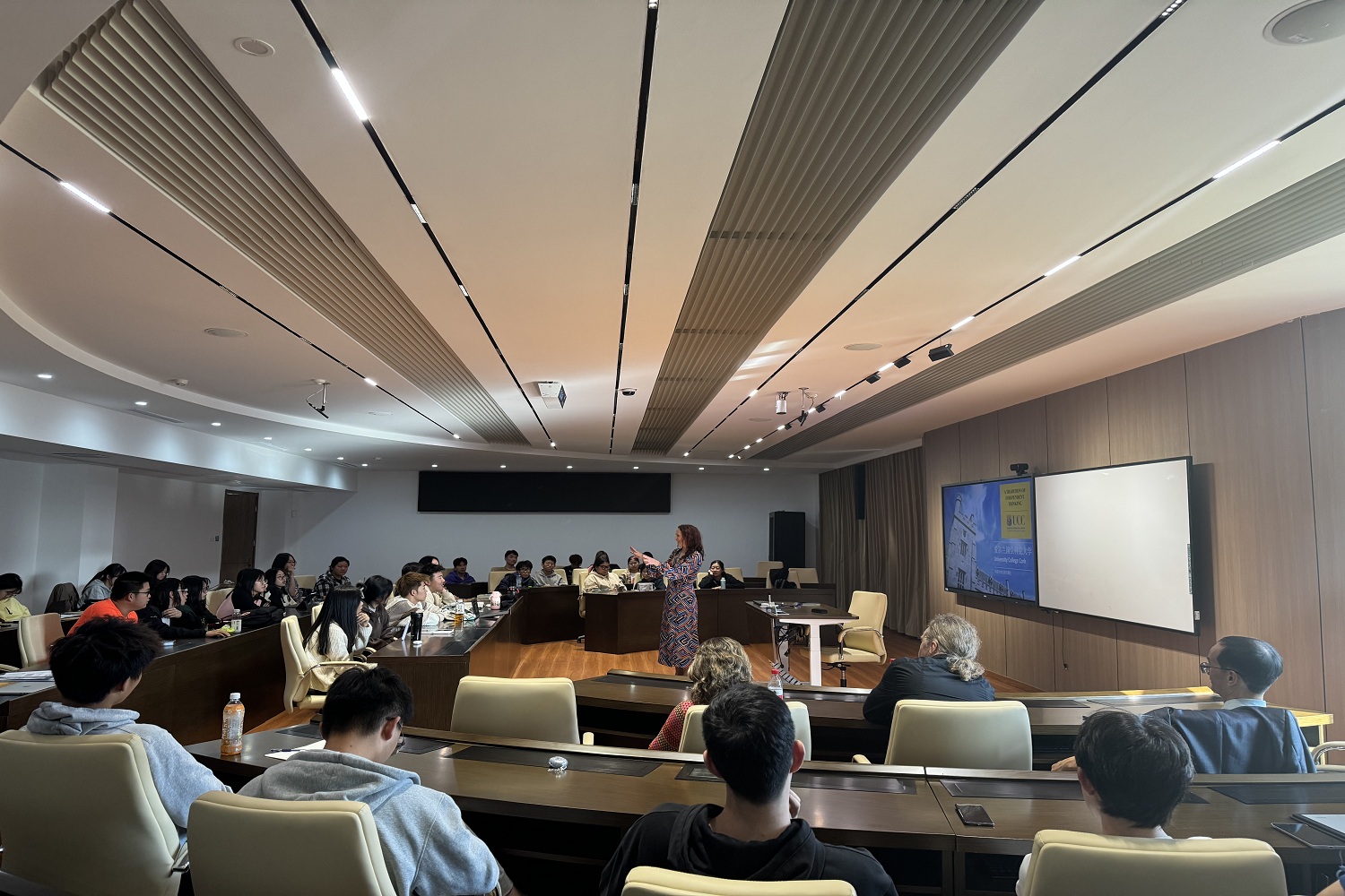 會談前,厄休拉一行在阜成路校區(qū)為我校與科克大學中外合作辦學項目班的學生進行了交流和座談,對兩校的合作項目進行了介紹并回答了學生的提問。