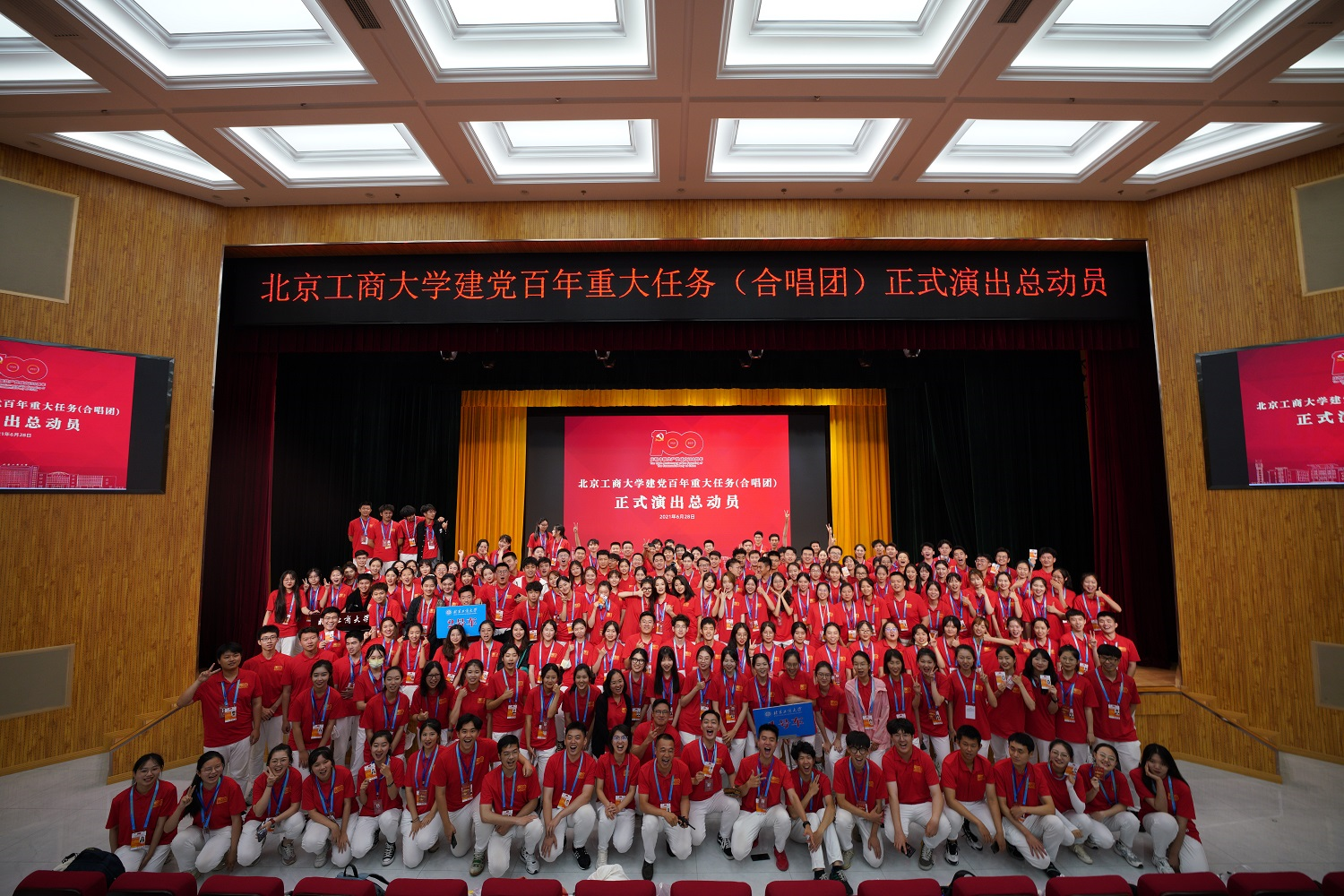 5月17日,學校召開專題會議部署合唱團工作。各學院聞令而動、高效運轉,僅用兩天時間,完成了動員、報名、選拔等系列工作,共選拔204名師生和5名后備參與建黨百年文藝晚會合唱工作。5月23日合唱團成立動員大會在良鄉主校區舉行,會上宣布成立北京工商大學建黨百年重大任務(合唱團)臨時黨總支,隨后在工作專班和臨時黨總支的領導下,在學校各相關部門齊心協力和大力支持下,合唱團訓練、保障、疫情防控各項工作有序推進。