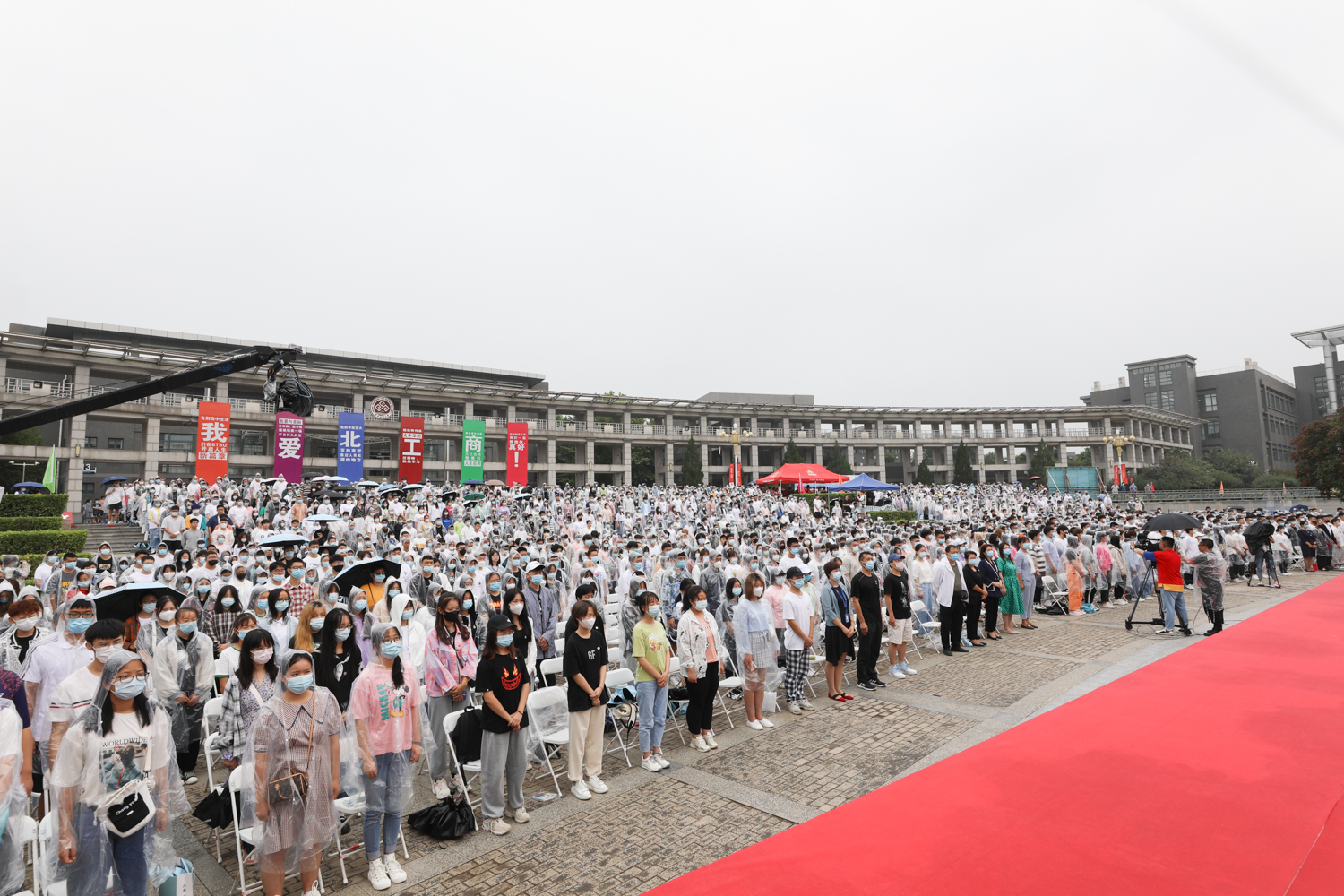碧水清溪映長空,清秋玉露又金風。9月5日上午9時,北京工商大學2021級本科生新生開學典禮在良鄉主校區求知廣場舉行。學校領導黃先開、孫寶國、王偉、李中奇、歐陽媛、張耘、鄭文紅、龔六堂,相關職能部門負責人、各學院領導、教師代表匯聚一堂,共同見證2776名本科新生邁向新的征程。開學典禮由校黨委副書記李中奇主持。開學典禮通過北工商官方微博、抖音、快手、嗶哩嗶哩等平臺同步直播。