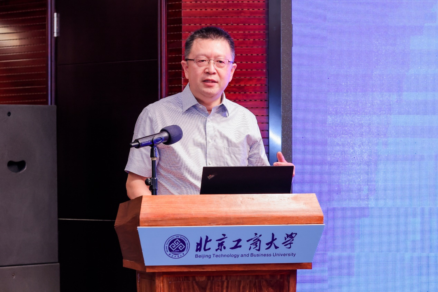 黨委副書記、校長孫寶國院士致開幕辭,對與會專家致以誠摯地感謝。他介紹了北京工商大學的基本情況和發展規劃,表示學校樹立了“雙一流”奮斗目標,并總結了“一條主線、兩個要求、三個學院和高精尖學科、四個本科專業、五個一級博士點、六個前百學科、七個學科門類,八個未來一級博士點”的成就和愿景。中國人工智能學會會長戴瓊海院士、北京高教學會會長線聯平、中國教育技術協會常務副會長張少剛分別為論壇致辭。
