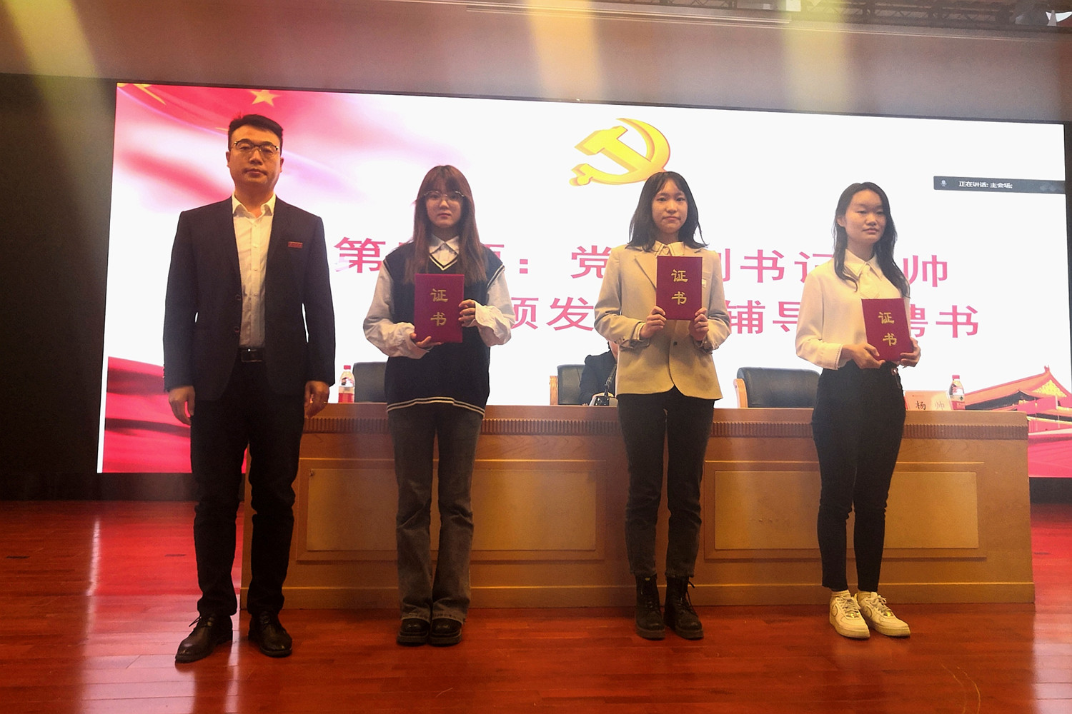 學院黨委副書記、分黨校副校長楊帥為黨校兼職輔導員頒發聘書。