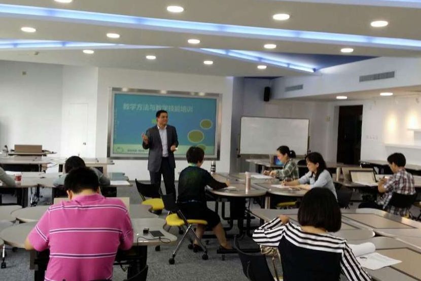 針對傳統(tǒng)課堂教學(xué)中存在的學(xué)生積極性不高、參與度較低、教學(xué)組織形式單一、教學(xué)效率亟待提升等問題,中心教師周付安為全體教師進行了“從教師到引導(dǎo)師”的教學(xué)方法與教學(xué)技能的培訓(xùn)。周老師對有效教學(xué)進行了界定,強調(diào)了有效教學(xué)學(xué)生的參與性,講解并練習(xí)了教學(xué)引導(dǎo)的概念、教學(xué)引導(dǎo)技術(shù)呈現(xiàn)的幾個階段、教學(xué)引導(dǎo)技術(shù)的設(shè)計模型,最后按照教學(xué)引導(dǎo)模型進行了教學(xué)引導(dǎo)的活動設(shè)計。全體教師完整參與并基本掌握了教學(xué)引導(dǎo)的原理、模型和設(shè)計,收獲很多、啟發(fā)很大。