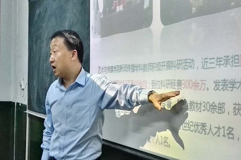 林剛首先介紹了我校和學(xué)院的整體概況、研究生教育的發(fā)展歷程以及近三年新聞傳播學(xué)科研究生招生情況。針對考研同學(xué)關(guān)注的問題,重點講述了學(xué)院的師資隊伍、學(xué)科特色與良好的學(xué)術(shù)環(huán)境;播放了本院學(xué)生制作的藝傳學(xué)院研究生招生宣傳視頻,讓西部學(xué)子更加直觀地感受到北工商美麗的校園環(huán)境和獨具特色的文化氛圍。