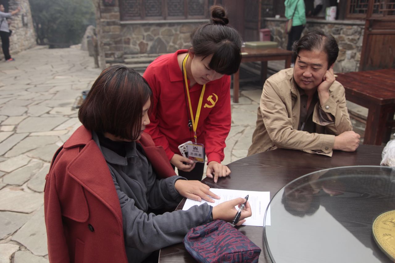 早上7點(diǎn)30分,黨員志愿者們準(zhǔn)時(shí)到達(dá)服務(wù)地點(diǎn)開始了緊張而忙碌的一天,學(xué)生黨員志愿者的服務(wù)主要包括停車場(chǎng)引導(dǎo)、擺渡車終點(diǎn)疏導(dǎo)人流、售票點(diǎn)維持秩序、檢票口檢票驗(yàn)證、爬山路口引導(dǎo)、文明旅游宣講等內(nèi)容,同時(shí)還對(duì)景區(qū)的工作人員、游客、當(dāng)?shù)卮迕竦日归_專題調(diào)研,從多方位了解游客對(duì)景區(qū)的反饋意見,為村里旅游產(chǎn)業(yè)獻(xiàn)計(jì)獻(xiàn)策。