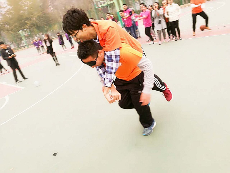 運動會設計了簡單有趣的六人七足,緊張刺激的背靠背夾籃球,配合默契的“你是我的眼”等眾多項目,吸引了很多學生參與和觀看。