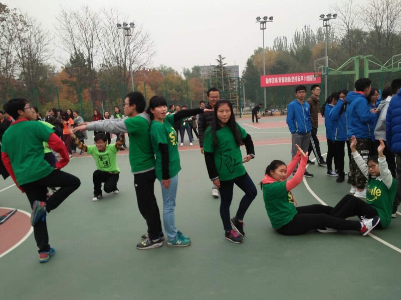 特別是在“我最棒”比賽中,10人一隊,兩人一組,進行背靠背夾籃球接力比賽。同學們在比賽中消除性別的隔閡,雙胳緊挽,背部緊夾籃球,大步橫跨,奮力沖向下一組接力選手。其余同學則激烈的為參賽選手加油鼓勁,傳球時幫忙遞送。所有人都激情飛揚,熱血參戰,給這寒冷的天氣增加了一絲溫暖。最后各學院代表隊6個人共同擺出“BTBU”字母。比賽中,選手們的團結友愛、積極向上的精神感染了在場的許多同學。