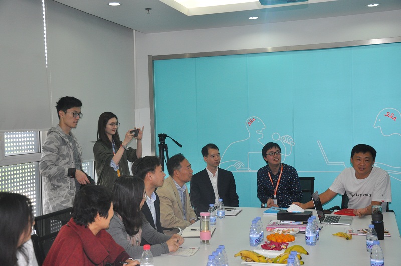 師生們首先參觀了公司的研發、曲庫制作、UI形象設計、技術支持等部門,實際體驗了“哇屋”、個人KTV系統等產品。面對母校師生,作為專注于點歌系統的公司,馬杰介紹了企業的概況、文化,以及創新、創業的歷程。他談到企業一定要專注,要學會做減法而不是加法,要認清自己的不足。譚國斌介紹了公司的大數據平臺以及應用思路。隨后,師生與雷石公司的老總和員工們,就創新創業、企業文化、圖像處理、語音處理、大數據技術及相關應用、云服務等方面進行了廣泛而深入的交流。交流期間,蔡強院長向馬杰總經理頒發了計算機技術學科碩士研究生實踐導師證書。
