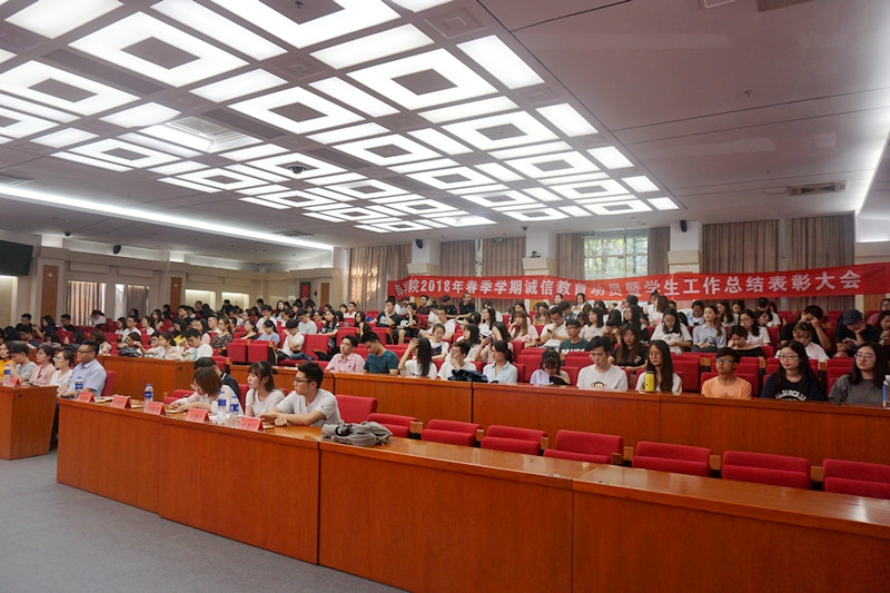 為迎接即將到來的期末考試,不斷完善提高共青團、學生會、青志協(xié)的工作水平,激勵商學院學生積極奮進勇往直前,商學院于6月20日下午開了2018年春季學期誠信教育暨學生工作總結(jié)表彰大會。學院黨委副書記樊江濤、團委書記李艷春、常務副書記李璐和郭建榮、李雨晴兩位輔導員,與學生組織系統(tǒng)主要干部、各班主要負責人近300人一起參加了大會。