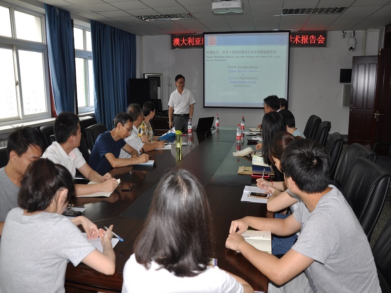 6月25日,澳大利亞維多利亞大學(xué)應(yīng)用信息科學(xué)研究中心主任、復(fù)旦大學(xué)社會(huì)計(jì)算及電子健康實(shí)驗(yàn)室主任張彥春教授,應(yīng)邀到我校做了題為“智慧醫(yī)療-醫(yī)學(xué)大數(shù)據(jù)挖掘及生命全周期健康管理”的學(xué)術(shù)報(bào)告。北京郵電大學(xué)計(jì)算機(jī)應(yīng)用技術(shù)中心主任、中國人工智能學(xué)會(huì)常務(wù)理事 、中國人工智能學(xué)會(huì)智能服務(wù)專業(yè)委員會(huì)主任杜軍平教授,我校計(jì)信學(xué)院院長蔡強(qiáng)教授、網(wǎng)絡(luò)中心主任李海生教授等30余名師生參加了報(bào)告會(huì)。報(bào)告會(huì)由計(jì)信學(xué)院黨委書記、食品安全大數(shù)據(jù)技術(shù)北京市重點(diǎn)實(shí)驗(yàn)室主任陳誼教授主持。