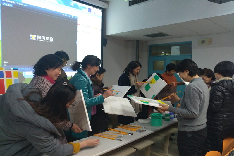 講座結束后,李家田老師進行了色塊油畫演示,并組織聽眾一起拿起畫筆,在備好的油畫布上進行色塊涂抹,一幅幅精彩的色塊油畫在聽眾手中繪出,大家相互欣賞著體驗著藝術帶來的快樂,幸福的笑容掛滿臉龐,老師們把心愛的作品帶回家,也帶回了一份輕松愉快和幸福。
