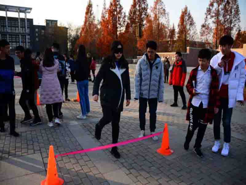 首先開展的是“仙人指路”,活動中每一位指路“大仙”都恪盡職守,為蒙眼騎士們指揮如何通過障礙,雖然戴著眼罩,卻依舊信心十足。比賽以接力的形式開展,加強了同學們的集體榮譽感和自信心。其次開展的是“三人四足”,每一組都躍躍欲試,為奪取第一摩拳擦掌。比賽的形式仍是接力賽,雖然長長的賽道增加了比賽的難度,但卻增進了同學之間的情誼。有的團隊為了奪取勝利不昔三人縱身一躍,可謂爭分奪秒。