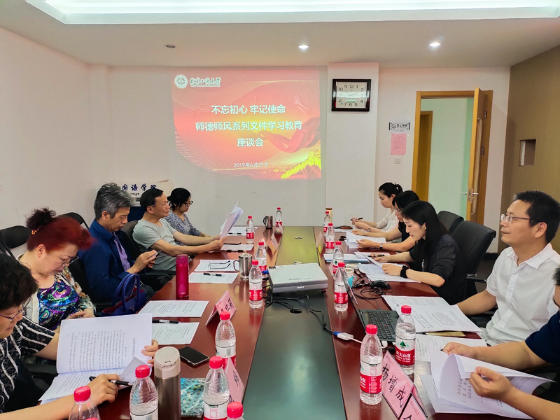 6月21日,外國語學院在阜成路校區(qū)召開了“不忘初心 牢記使命”師德師風系列文件學習教育座談會。學院黨總支書記任金晶,黨總支委員、系部主任團隊負責人、系部支部委員、教學秘書、教師代表和學生代表約20多人參加了會議。座談會由學院副院長苗天順主持。