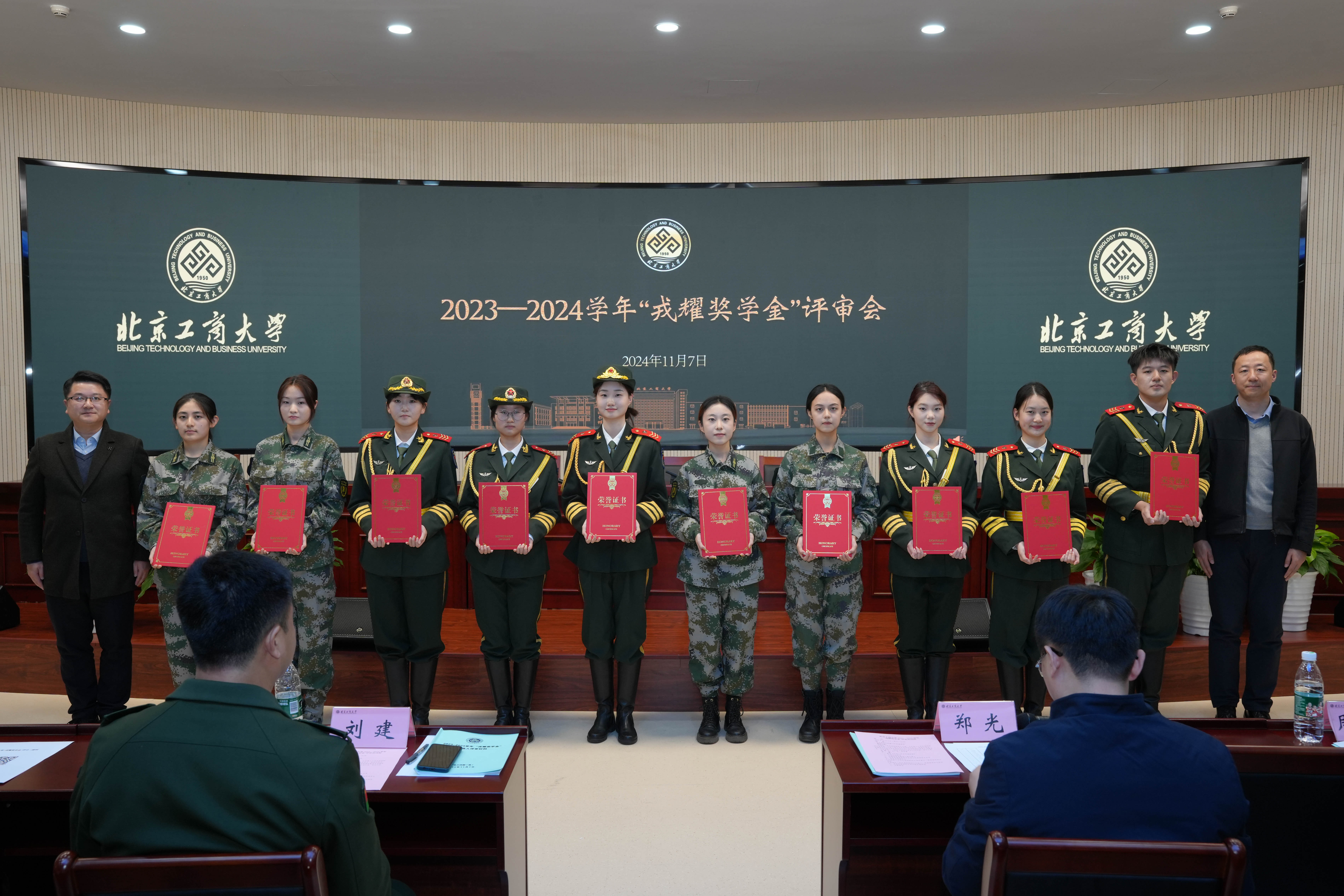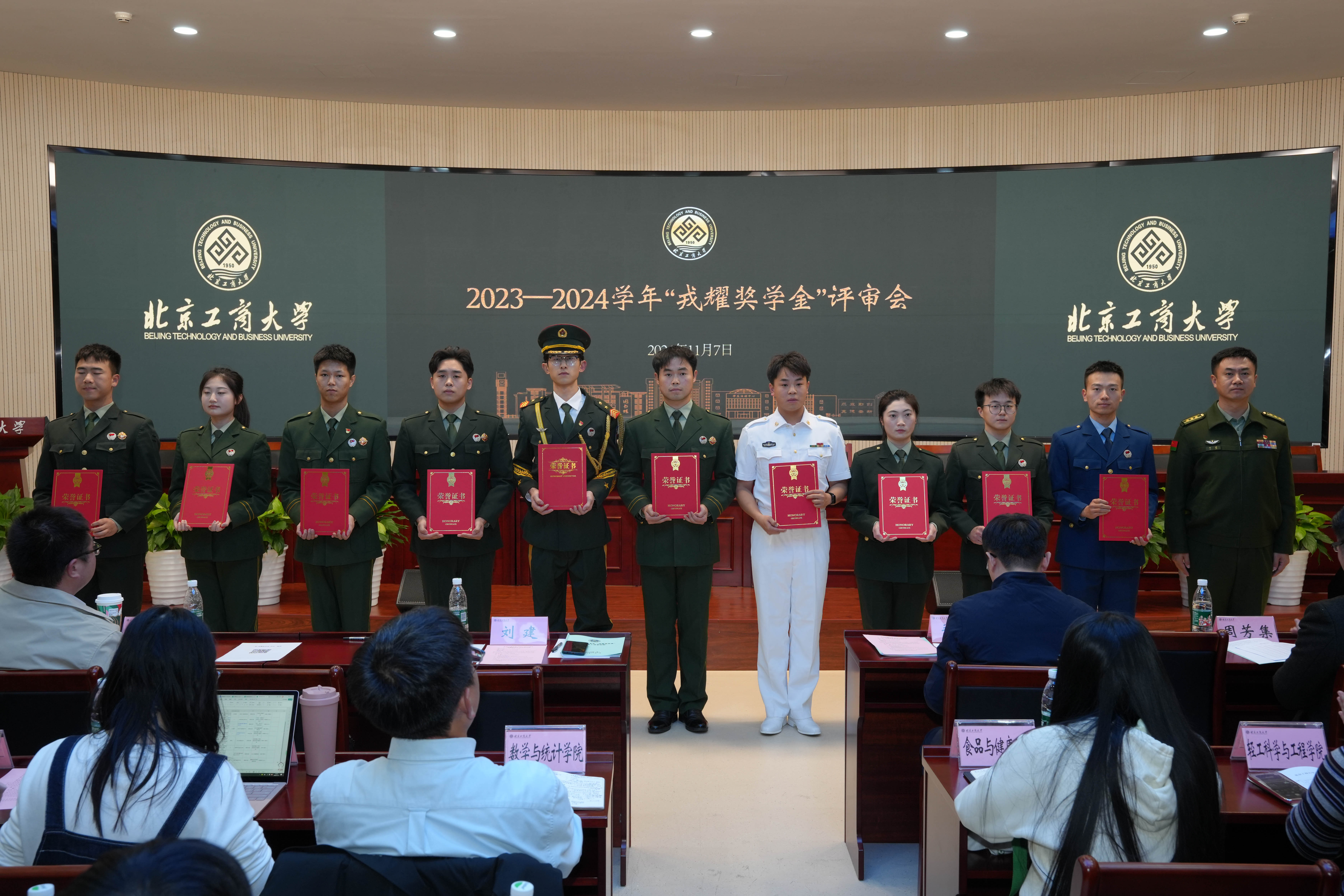 11月7日下午,學校在良鄉校區舉辦2023-2024學年“戎耀獎學金”評審會。西城人民武裝部副部長劉建、北京理工大學武裝部副部長周芳集、首都經濟貿易大學武裝部肖江文、學校武裝部部長鄭光、副部長黨浩、各學院負責國防教育工作輔導員、退伍大學生代表及民兵應急連代表參加會議。