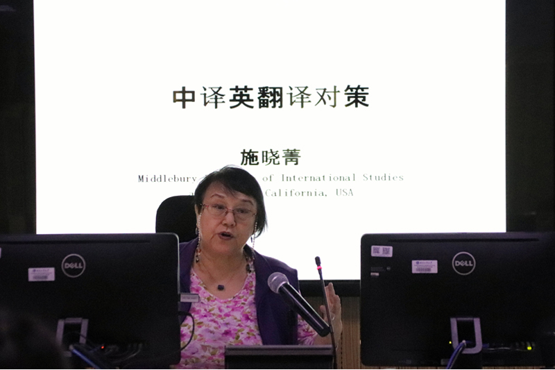 1022日,美國蒙特雷國際研究學院(MIIS)高級翻譯學院副教授、國際會議口譯員協會(AIIC)會員及亞太區主管、聯合國資深同傳譯員、AIIC會員、中國外文局教育培訓中心顧問施曉菁教授應邀來外國語學院舉辦題為“中譯英翻譯對策”的講座。外國語學院院長劉紅艷,學院研究生和本科生參加了本次講座。本次講座由劉院長主持。
