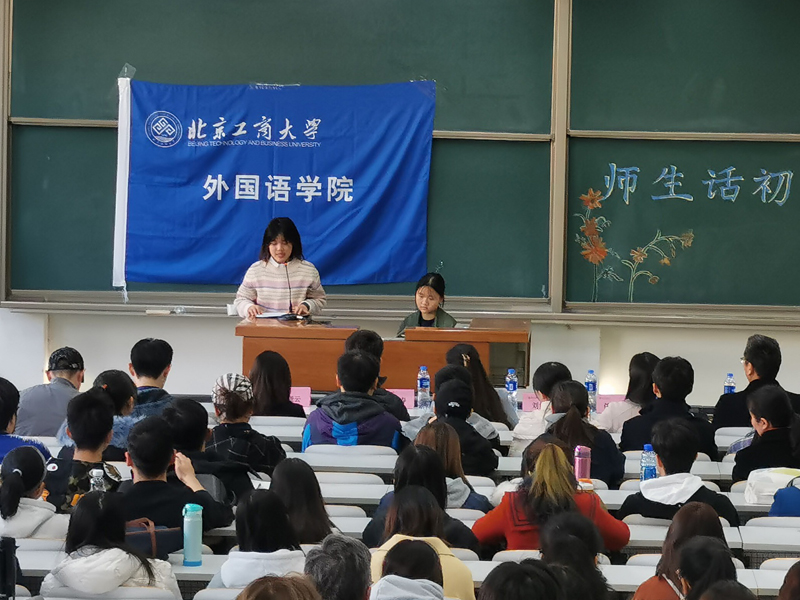 以紀(jì)念新中國成立70周年為契機(jī),深入貫徹“不忘初心/牢記使命”主題教育,進(jìn)一步加強(qiáng)學(xué)風(fēng)建設(shè),外國語學(xué)院于11月13日下午召開“師生話初心,奮進(jìn)新時代”秋季學(xué)期導(dǎo)師學(xué)生懇談會。院長劉紅艷、黨總支書記任金晶、副院長苗天順、黨總支副書記于濤、院長助理王曉慶、院長助理王景云,全體導(dǎo)師、班主任及17、18、19級全體本科生參加會議。會議由團(tuán)委書記張悅主持。