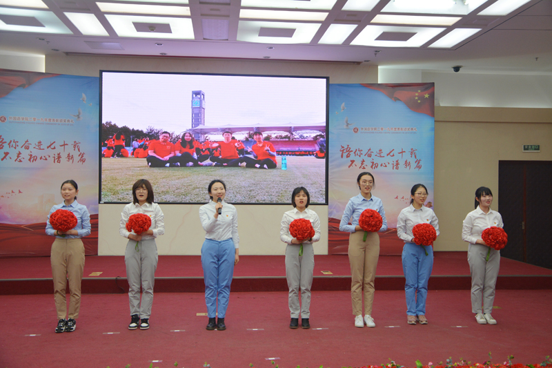 為表彰先進,展優秀學子之風,樹積極進取之貌,在全院學生中形成向先進榜樣看齊的學習風氣, 12月25日下午,外國語學院在良鄉校區舉行2018-2019學年“語你奮進七十載,不忘初心譜新篇”表彰頒獎典禮。學生處副處長蓋曉慶、外國語學院黨總支書記任金晶、院長劉紅艷、黨總支副書記于濤、副院長苗天順、院長助理王曉慶出席,外國語學院導師及班主任代表、輔導員、本科生及研究生參加本次典禮。