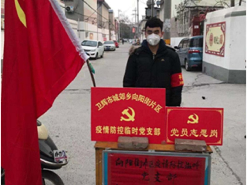 疫情就是命令,防控就是責任。寒假在家期間,正值新冠肺炎病毒爆發之時,他響應黨中央和國家的號召,承擔起作為一名入黨積極分子的責任,自愿向河南省衛輝市黨組織報名,以志愿者的身份積極投入到各社區街道的防疫工作中去,他就是苗晟源——計算機與信息工程學院19級計算機科學與技術專業的一名學生,也是一名積極向黨組織靠攏的大學生青年。