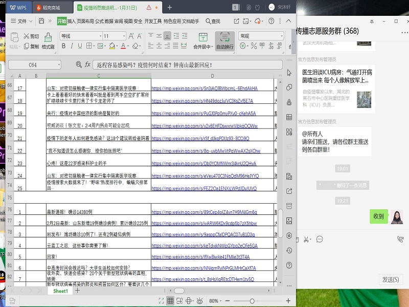 “任務形式可以變,但工作目標不能變!”發生疫情后,宋沐軒積極參與了山東省聯合救災網絡濰坊疫情防控協調平臺,并利用自己的經驗和專業知識,對網絡上的相關疫情新聞進行過濾,并利用微信、QQ等方式進行推送和傳播,澄清辟謠、正向發聲,為網絡空間的清朗貢獻一份力量。