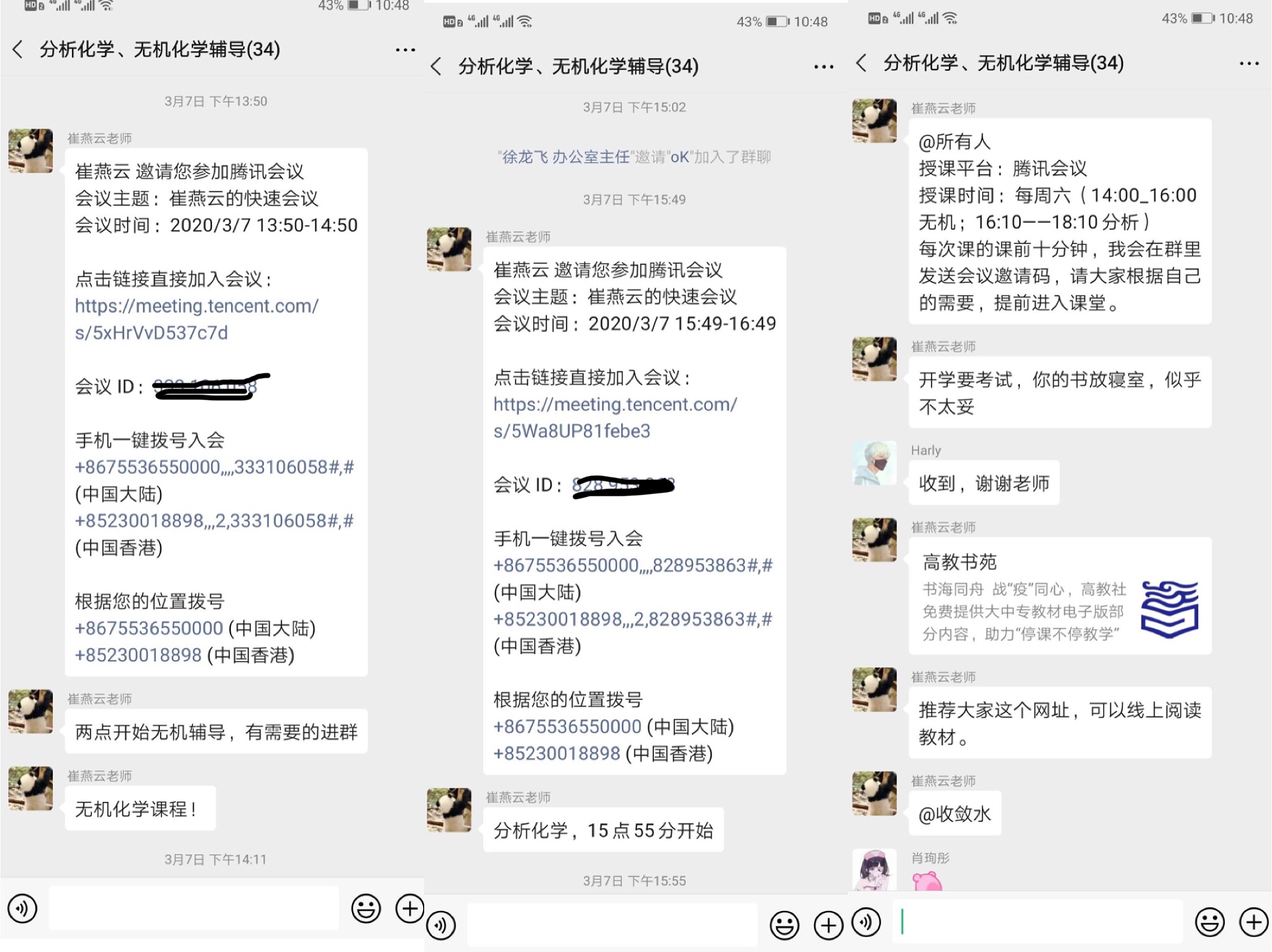 針對(duì)學(xué)院部分19級(jí)學(xué)生高中階段未學(xué)習(xí)化學(xué)相關(guān)課程,或化學(xué)基礎(chǔ)薄弱的情況,學(xué)院上學(xué)期安排化學(xué)系崔燕云老師對(duì)學(xué)生進(jìn)行了課程輔導(dǎo)。近期針對(duì)上學(xué)期化學(xué)課程考試掛科的學(xué)生,學(xué)院再次安排化學(xué)系崔燕云老師為他們進(jìn)行線上輔導(dǎo)。輔導(dǎo)員幫助建立了化學(xué)課答疑輔導(dǎo)微信群,幫助化學(xué)課程掛科和化學(xué)基礎(chǔ)薄弱的同學(xué)學(xué)習(xí)。為了幫助更多的學(xué)生解決學(xué)業(yè)問(wèn)題,學(xué)院還邀請(qǐng)了18級(jí)和17級(jí)未通過(guò)分析化學(xué)和無(wú)機(jī)化學(xué)考試的同學(xué)也進(jìn)群學(xué)習(xí)。崔老師通過(guò)騰訊課堂每周兩次講授相關(guān)課程,并隨時(shí)在微信群里為同學(xué)們答疑解惑,受到同學(xué)們的好評(píng)。