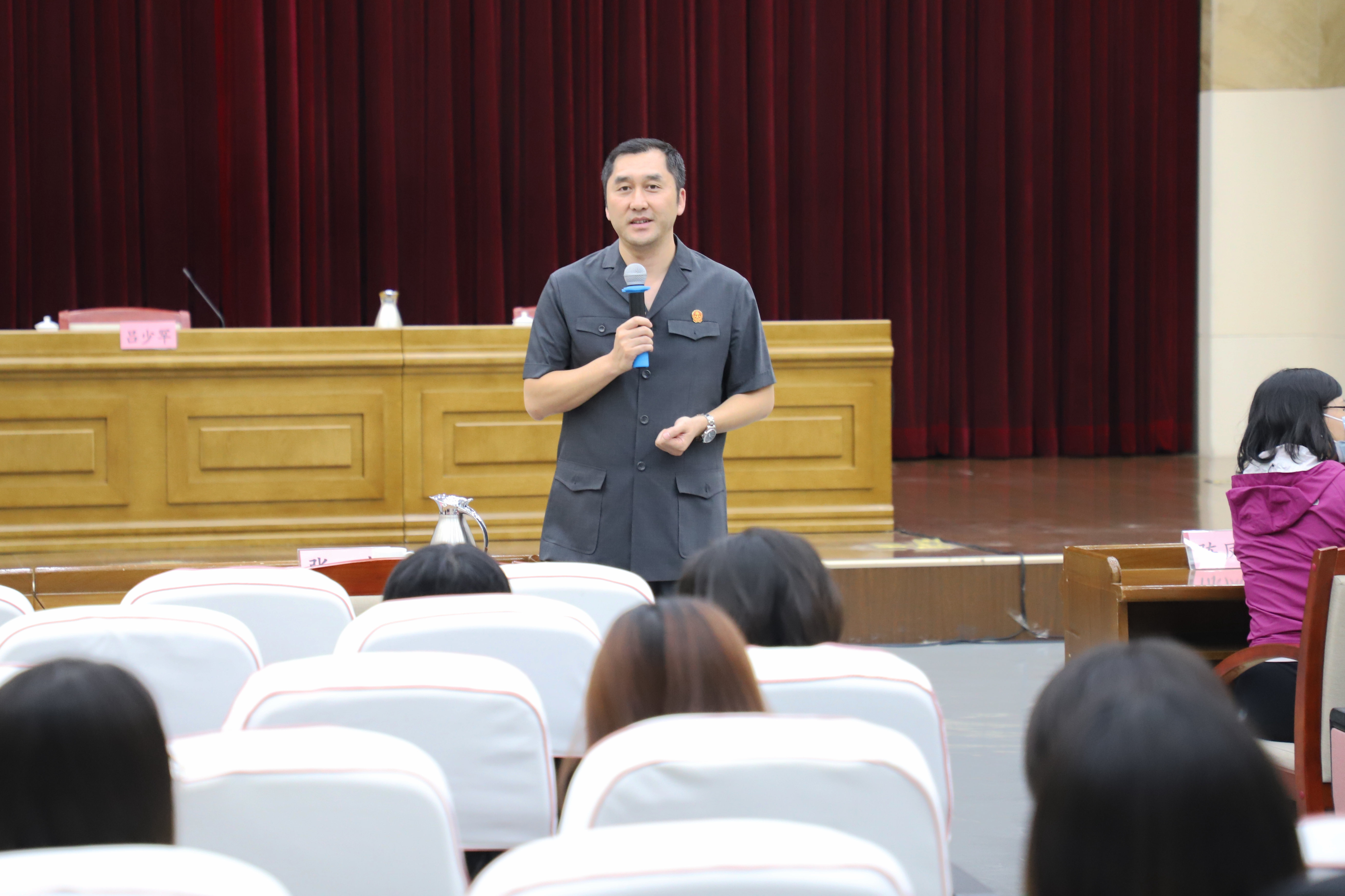 講座結束后,在房山法院掛職副院長的法學院張龍老師,以一名法院工作者的角度向同學們講述了房山法院的光輝成就,以一名老師的身份向同學們提出殷切的希望與美好的祝愿。同學們在老師的親切話語中,感受法院氛圍,體會法學魅力。