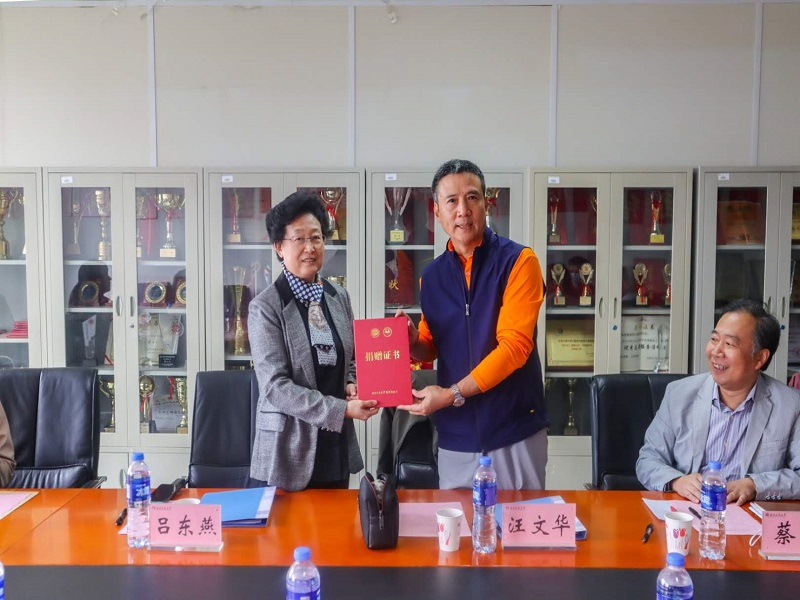 首先,學校教育基金會秘書長呂東燕老師與校友汪文華先生簽訂捐贈協(xié)議書,并代表學校對汪文華校友的慷慨資助表示感謝。之后,由校友汪文華先生為學生頒發(fā)助學金證書。