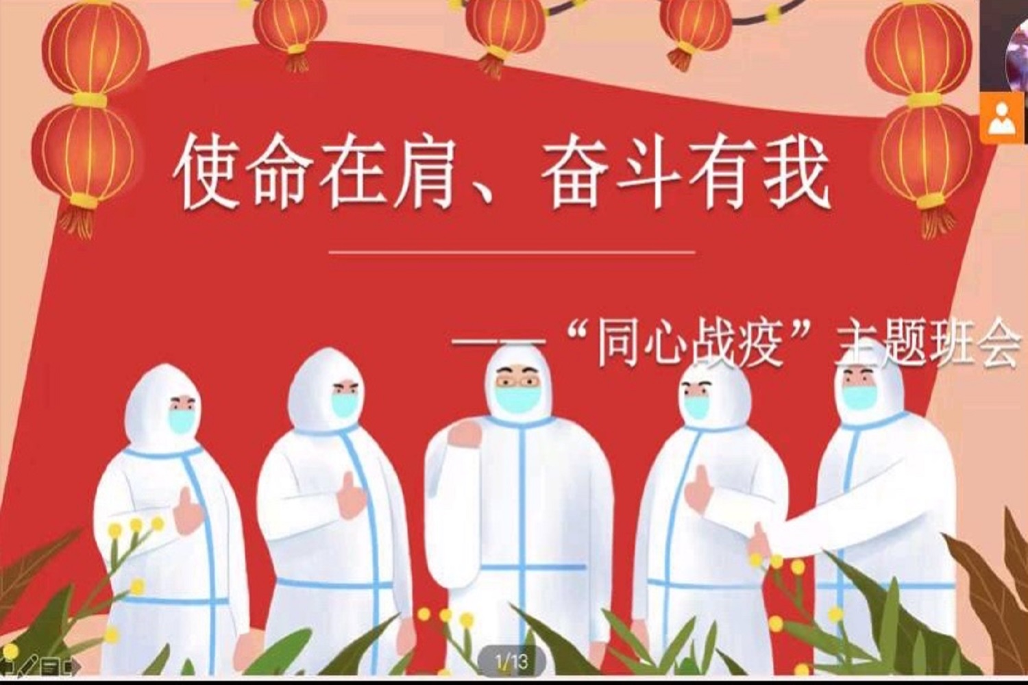 為凝聚學習榜樣、致敬英雄家國情懷,進一步明確青年學生的時代使命和責任擔當,倡導學生為校園常態化疫情防控做出積極貢獻,9月、10月,學生處在全校范圍內組織開展“使命在肩、奮斗有我”——“同心戰疫”主題班會,全校各班班主任、年級輔導員積極響應號召,各班班委會認真籌備,全校學生積極參與、反響熱烈。
