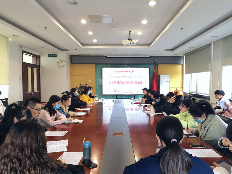為深入推進教育教學(xué)思想大學(xué)習(xí)大討論,開展廣泛而充分的交流研討,11月26日,商學(xué)院召開研究生學(xué)生代表教育教學(xué)大學(xué)習(xí)大討論專題研討座談會。商學(xué)院黨委書記張春萍,黨委副書記張倩,輔導(dǎo)員趙麗紅、趙杰,研究生學(xué)生黨支部書記、班長共同出席會議。會議由張倩主持。