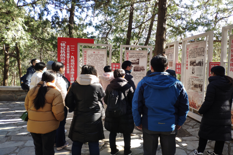紀念亭處在植物園的深處,登山過程中,師生代表們秉承黨員不怕苦、不怕累的精神,克服困難,互幫互助,最終抵達并通過參觀“銘記抗戰歷史 傳承愛國情懷主題展,回顧了“一二·九”運動的成因、運動情況和意義,中國人民抗擊日本侵略者的英勇故事,深切領會革命先烈艱苦奮斗、拼搏進取的精神。