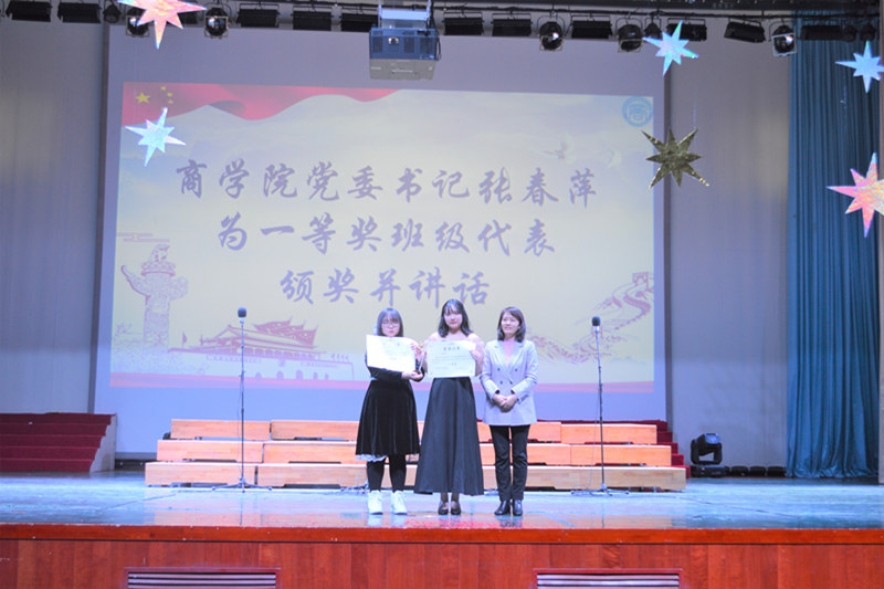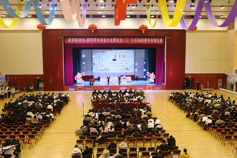 為弘揚愛國精神,增強班級凝聚力,豐富校園文化生活,12月6日,商學院在良鄉校區舉辦2019-2020學年表彰大會暨紀念“一二·九”運動85周年合唱比賽。商學院黨委書記張春萍,黨委副書記張倩,副院長孫永波、張偉華,組織員祁飛,團委書記趙杰,全體2020級班主任、輔導員,以及2020級本科生以及受表彰學生代表參加了本次活動。邀請校團委曹璐婷、體育與藝術教學部孫凱、丁璇擔任評委。