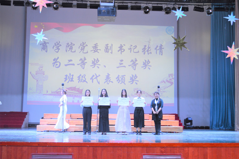 經過評委的認真評審,工商202班、工商203班獲得一等獎。此次比賽評出了最佳舞臺獎、最佳風采獎、最佳創意獎、最佳編排獎、最佳指揮獎、最佳人氣獎。校合唱團指導老師孫凱進行了點評,肯定了各班老師和同學們的努力和精細的準備。與會領導和老師分別為獲獎的班級代表進行了頒獎。