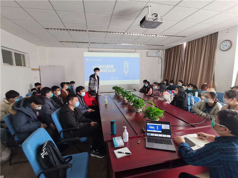 數(shù)管201班主任焦子豪說明了接種疫苗的重要性和緊迫性,鼓勵同學(xué)們在沒有接種禁忌癥的情況下,都能夠接種疫苗。數(shù)管202班主任段大高解釋了新冠疫苗接種是常態(tài)化疫情防控形勢下預(yù)防新冠肺炎傳播的最有效的途徑,鼓勵同學(xué)們積極接種疫苗,建立起免疫屏障,阻斷新冠肺炎的流行。經(jīng)管201班副班主任孟山月希望同學(xué)們自覺積極接種新冠疫苗,做科學(xué)的傳播者、健康的守護(hù)者,保護(hù)自己、保護(hù)家人、保護(hù)同學(xué)、保護(hù)社會。經(jīng)管202班主任賈君怡請接種過疫苗的同學(xué)們現(xiàn)身說法,消除了大家的接種顧慮,鼓勵同學(xué)們積極接種,共筑免疫長城。經(jīng)管203班主任邸玉娜宣讀了學(xué)接種新冠肺炎疫苗倡議書,詳細(xì)解答同學(xué)們的各類問題和疑惑,本著“當(dāng)社會需要時,我們義無反顧”的初心,班級同學(xué)全部已接種和有意向接種率達(dá)到100%。