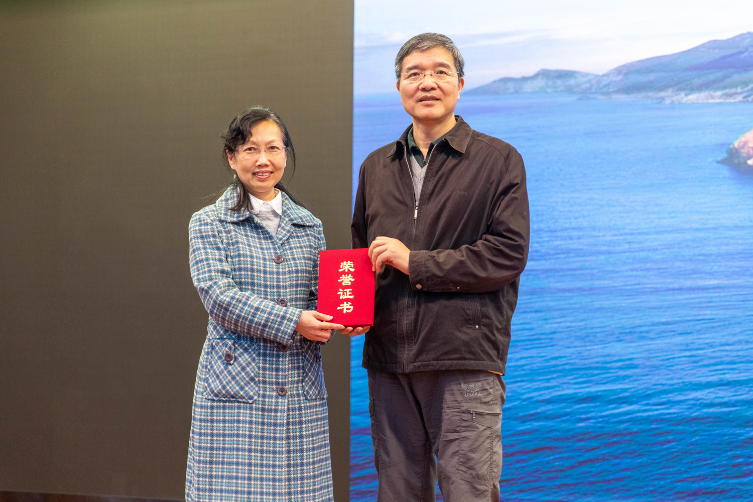 報告結(jié)束后,陳誼和譚勵在熱烈的掌聲中代表學(xué)院為唐衛(wèi)清和吳國斌頒發(fā)了榮譽(yù)證書。